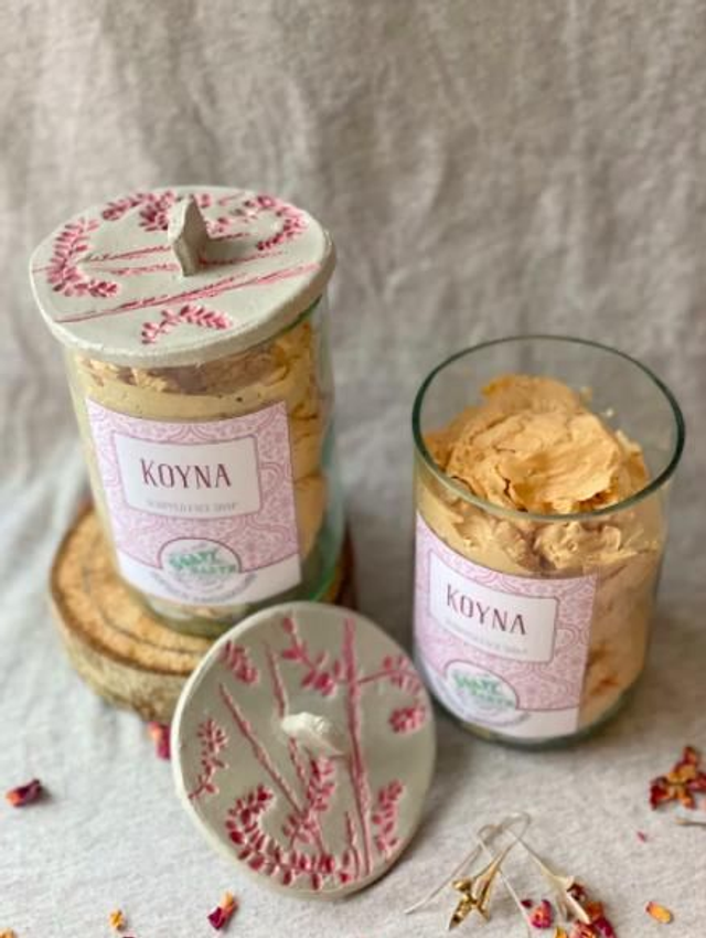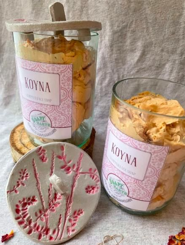 The soap is in a glass jar. Everything you see, like soap, packaging, the lid of the jar, is handmade by me.