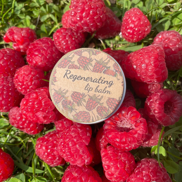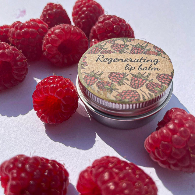 Open the tin of moisturizing lip balm and enjoy the memories of summer. I put real forest raspberries in it, macerating them in nourishing jojoba oil. Raw beeswax protects and regenerates.